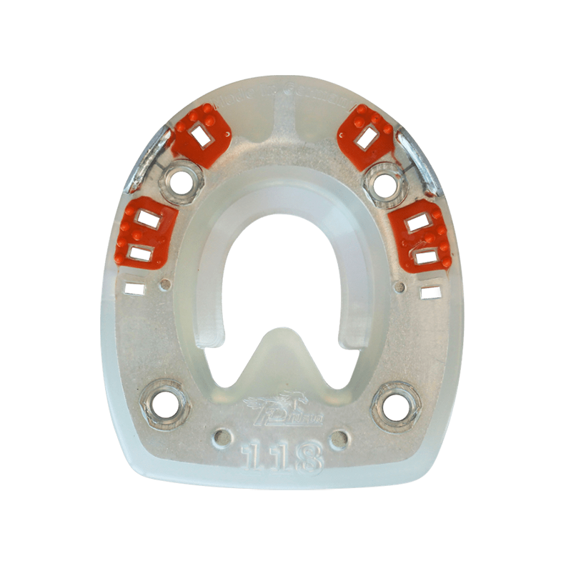 Små gummitapper på innsiden av skoen gjør at den sitter godt under hoven og unngår vridning. De gir godt grep og feste i terrenget og på hardt underlag. Skoene er 15mm tykke.